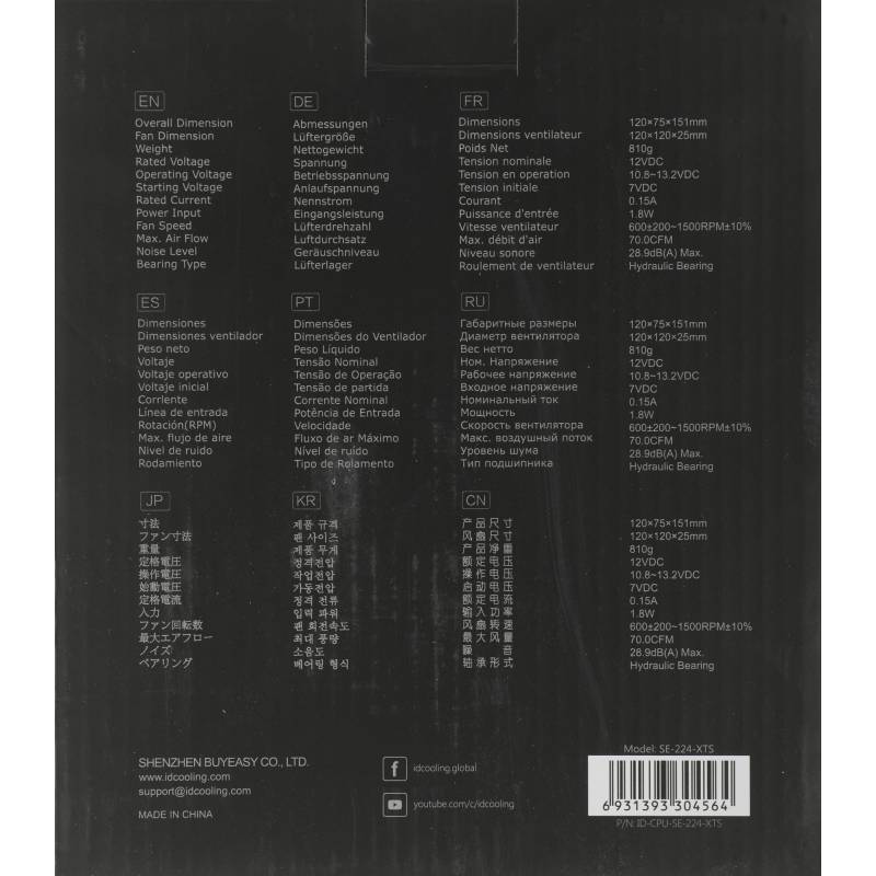 Устройство охлаждения(кулер) ID-Cooling SE-224-XTS Soc-AM5/AM4/1200/1700/1851 черный 4-pin 16-29dB Al+Cu 220W 650gr Ret