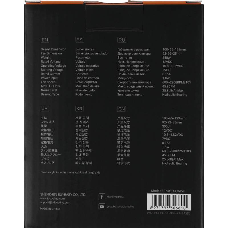 Устройство охлаждения(кулер) ID-Cooling SE-903-XT Basic Soc-AM5/AM4/1200/1700/1851 черный 4-pin 14-26dB Al+Cu 130W 650gr Ret