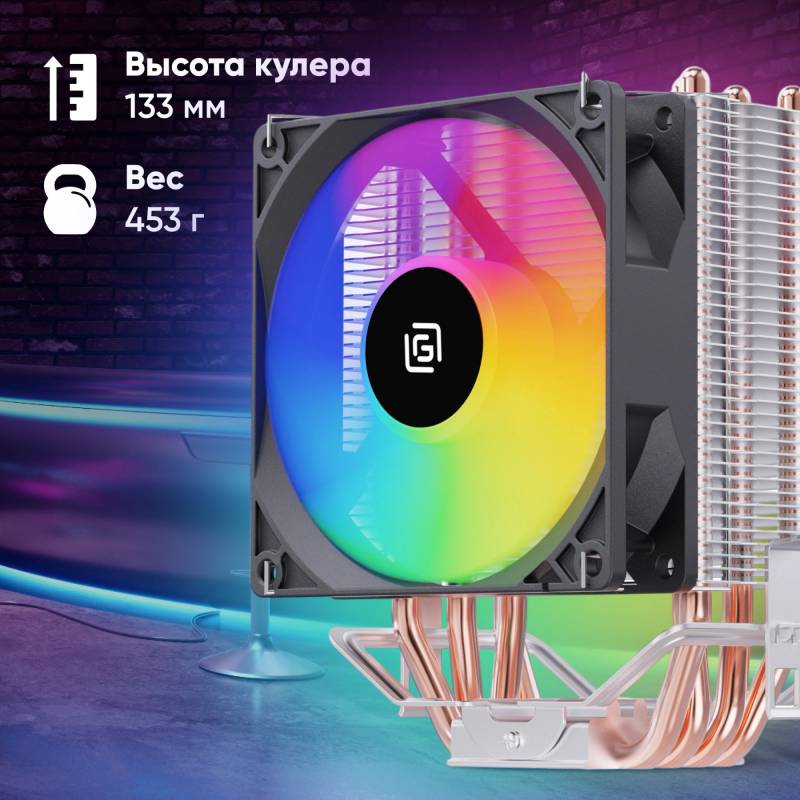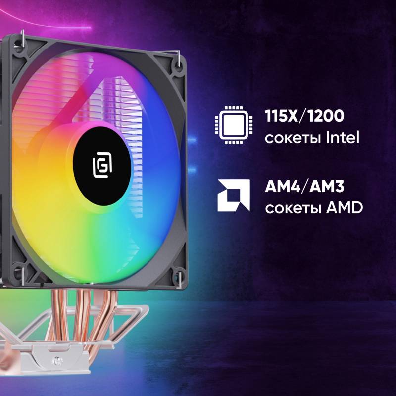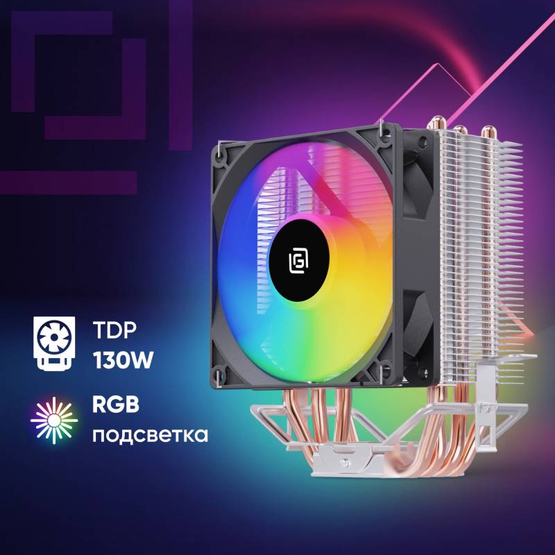 Устройство охлаждения(кулер) Оклик OG-CPC130FRGB-1 RGB Soc-AM5/AM4/1200/1700/1851 черный 3-pin 18-23dB Al+Cu 130W 453gr Ret