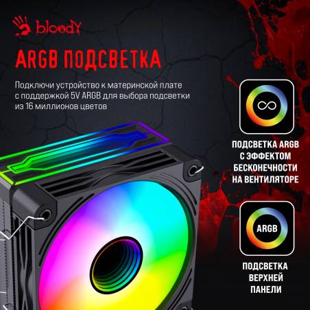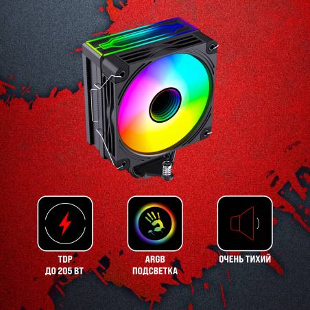 Устройство охлаждения(кулер) Bloody BD-AC205-ARGB1 ARGB Soc-AM5/AM4/1200/1700/1851 черный 4-pin 14-26dB Al+Cu LCD 205W 513gr Ret