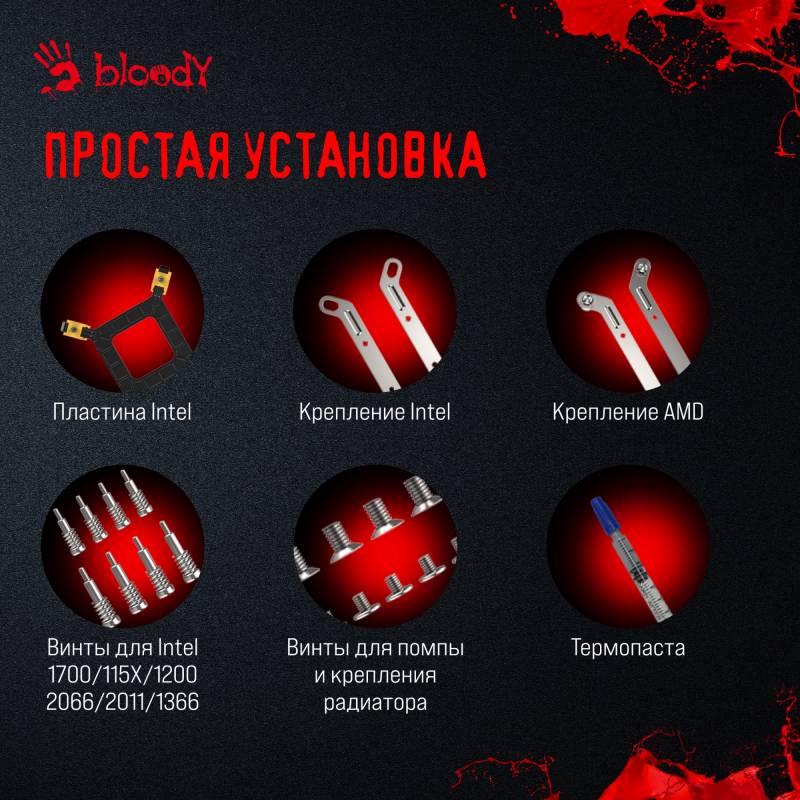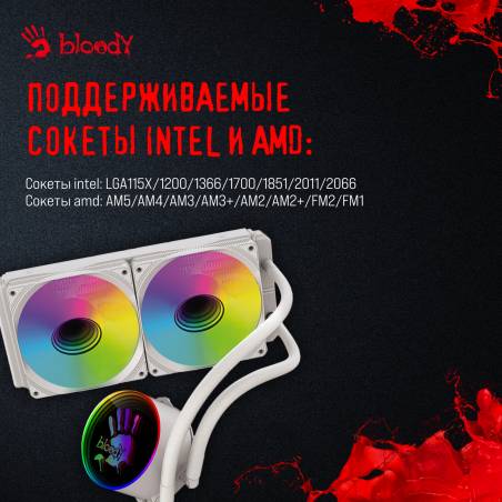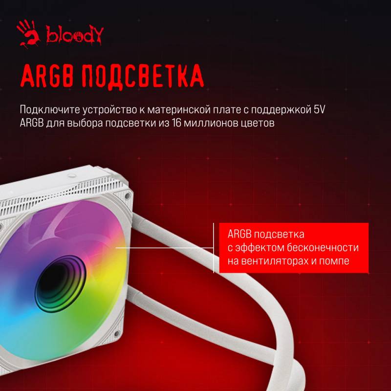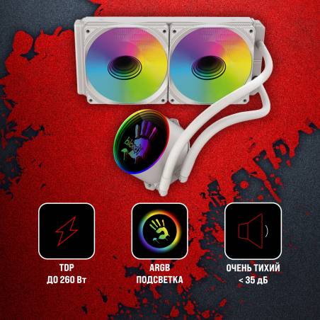 Система водяного охлаждения Bloody BD-LC240ARGB1 ARGB Soc-AM5/AM4/1200/1700/1851 белый 4-pin 22-35dB Al+Cu LCD 260W 1200gr Ret (