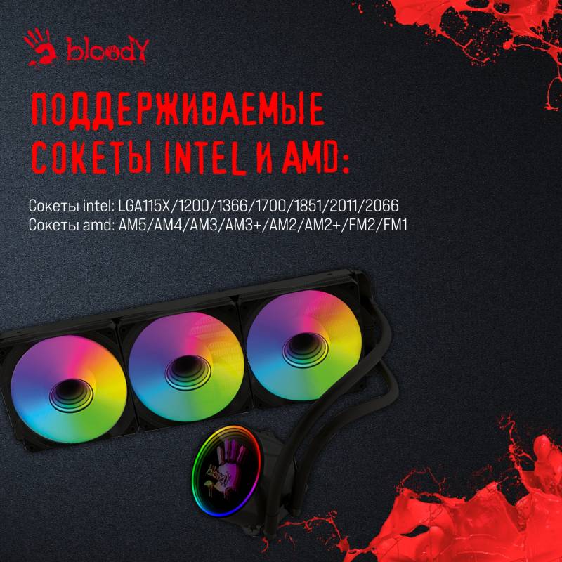 Система водяного охлаждения Bloody BD-LC360ARGB1 ARGB Soc-AM5/AM4/1200/1700/1851 черный 4-pin 22-35dB Al+Cu LCD 300W 1500gr Ret