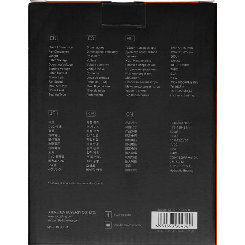 Устройство охлаждения(кулер) ID-Cooling SE-214-XT Basic Soc-AM5/AM4/1200/1700/1851 черный 4-pin 16-27dB Al+Cu 180W 500gr Ret