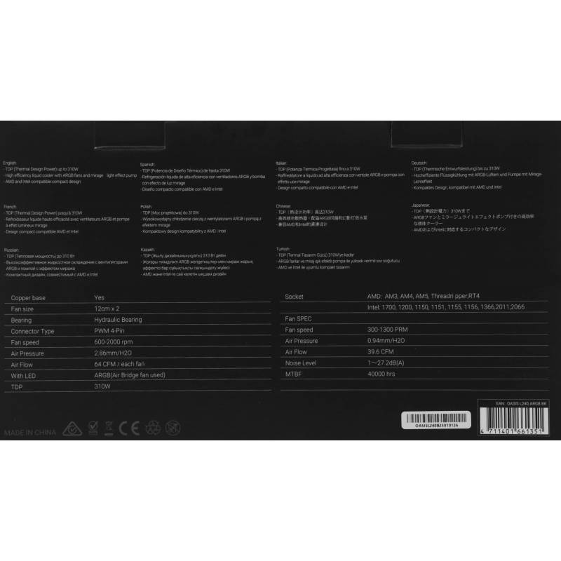 Система водяного охлаждения Formula Oasis L240 ARGB Soc-AM5/AM4/1200/2066/1700/1851 черный 4-pin 1-27.2dB Al+Cu 310W Ret (OASIS