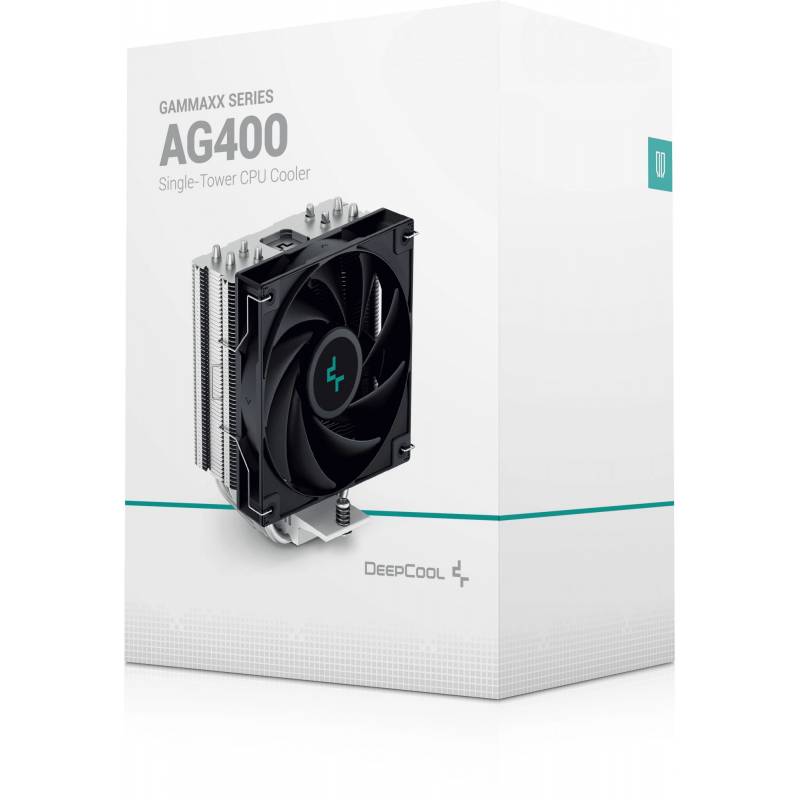 Устройство охлаждения(кулер) Deepcool AG400 Soc-AM5/AM4/1200/1700/1851 серебристый/черный 4-pin 18-31.6dB Al+Cu 220W 614gr Ret (