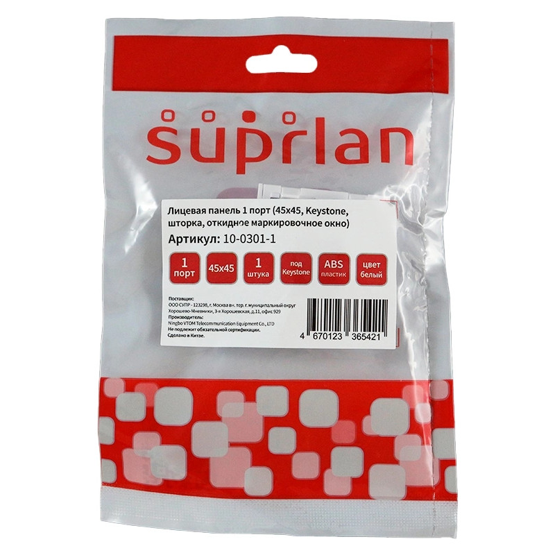 Панель Suprlan 10-0301-1 лицевая со шторкой 45x45 1xKeystone ABS пластик белый