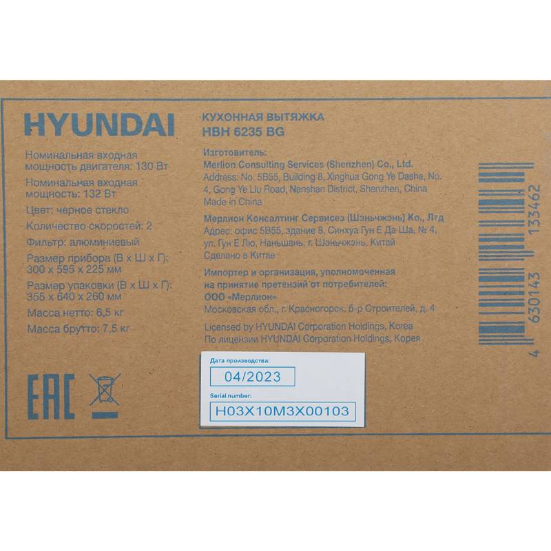 Вытяжка встраиваемая Hyundai HBH 6235 BG черный управление: кулисные переключатели (1 мотор)