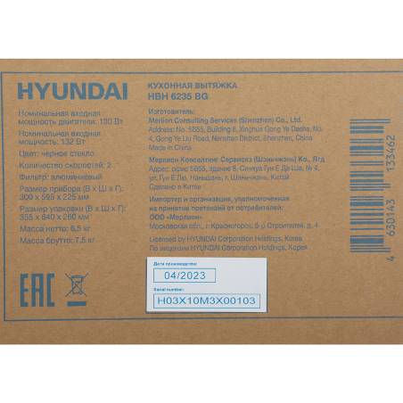 - Передняя стеклянная панель, подходит угольный фильтр HYUNDAI HCF 11P