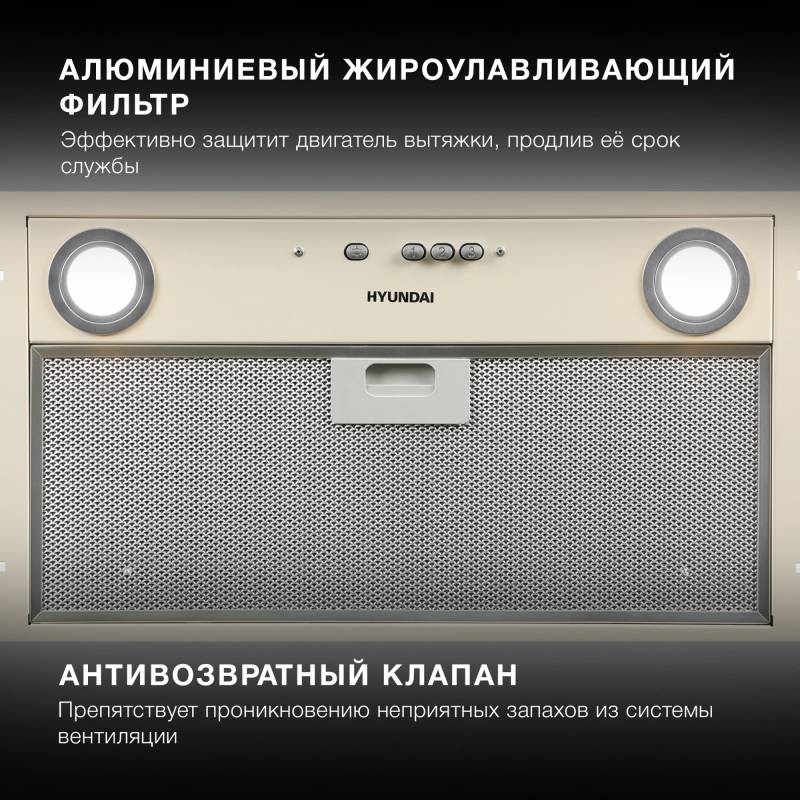 Вытяжка встраиваемая Hyundai HBB 6035 BE бежевый управление: кнопочное (1 мотор)