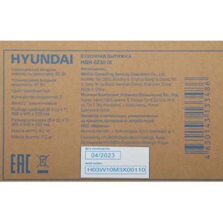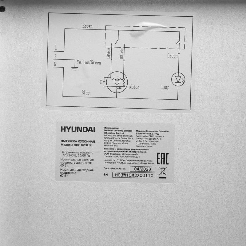 Вытяжка встраиваемая Hyundai HBH 6230 IX нержавеющая сталь управление: кулисные переключатели (1 мотор)