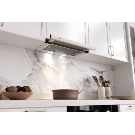 - Выдвижная панель вытяжки «ИНТЕГРА» позволяет значительно увеличить зону всасывания над рабочей поверхностью, тем самым, повышая эффективность удаления загрязнённого воздуха.