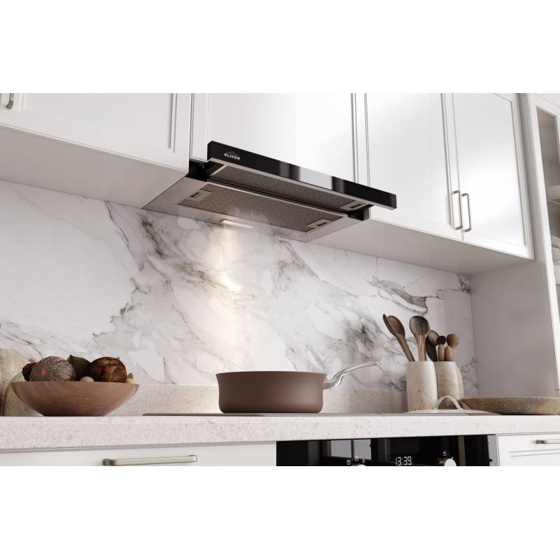 Вытяжка встраиваемая Elikor Интегра Glass 50Н-400-В2Д нержавеющая сталь/стекло черное управление: кнопочное (1 мотор)