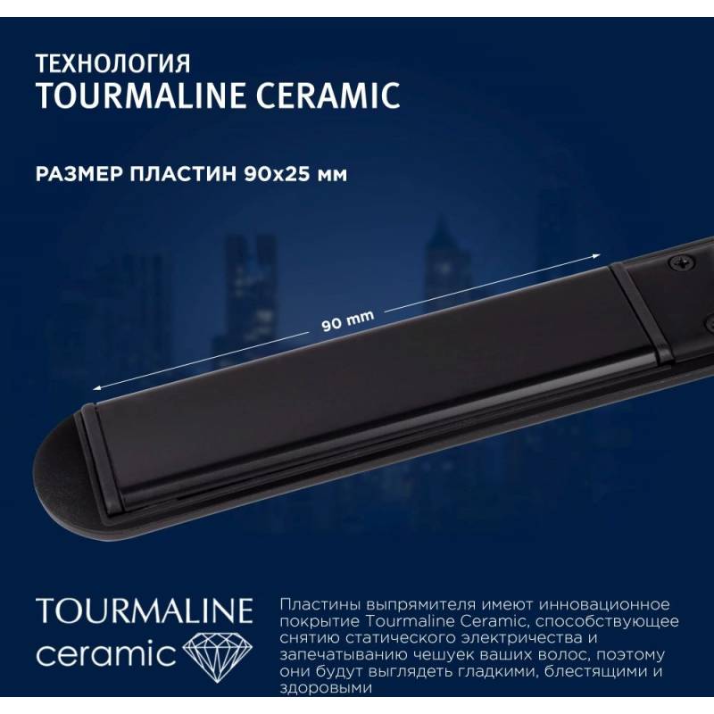 - Большие широкие пластины, особенно удобные при укладке длинных волос, имеют турмалиновое покрытие, которое помогает «запечатывать» волосяные чешуйки, делая волосы гладкими, а технология PTC Heating бережет их от пересушивания, предотвращая перегрев.