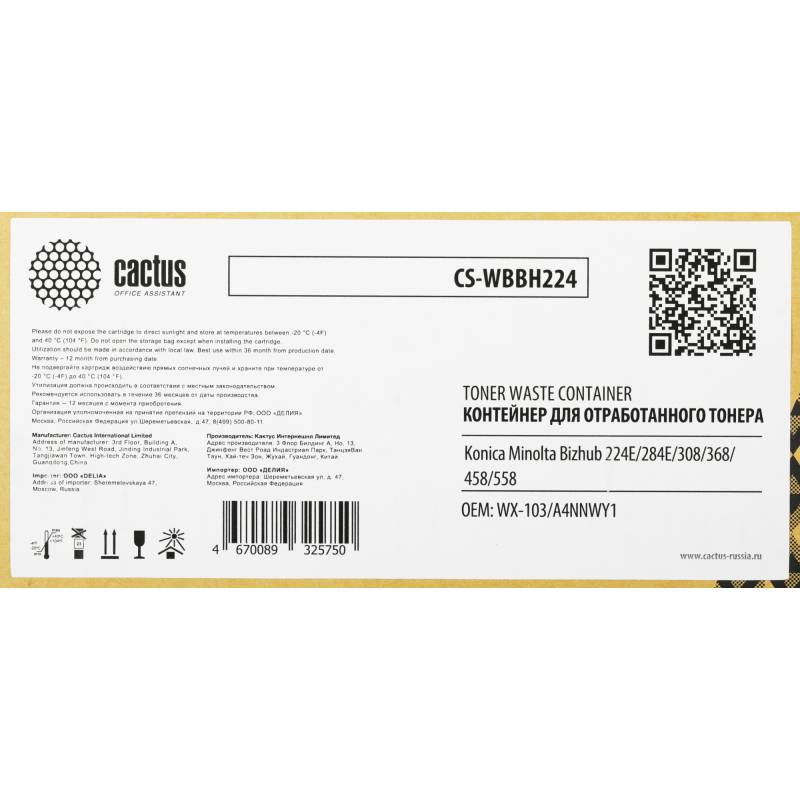 Бункер Cactus CS-WBBH224 (WX-103/A4NNWY1) для Konica Minolta Bizhub 224E/284E/308/368/458/558 40000стр.