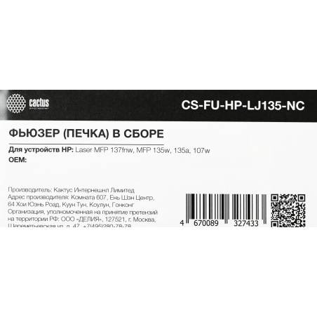 Печка в сборе Cactus CS-FU-HP-LJ135-NC (JC91-01077A) (новая) для HP Laser 107a/107w/MFP 135a/135w/137fnw Neverstop 1020c/MFP1005