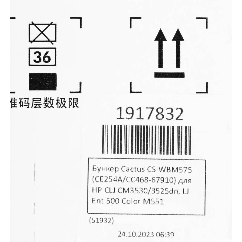 Бункер Cactus CS-WBM575 (CE254A/CC468-67910) для HP CLJ CM3530/3525dn, LJ Ent 500 Color M551 36000стр.