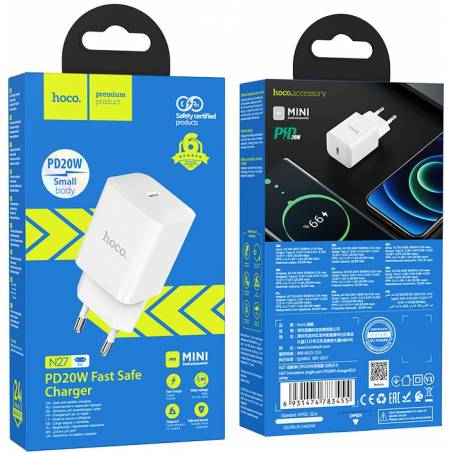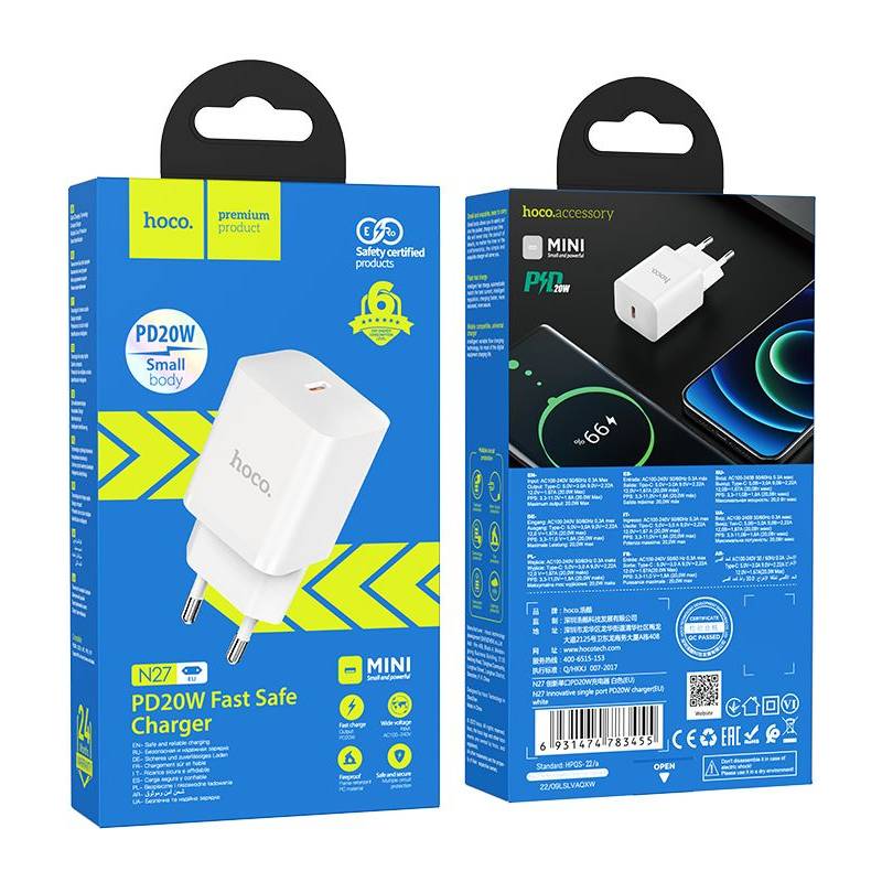 Сетевое зар./устр. Hoco N27 White 20W 3A+2.22A+1.67A (PD+QC+AFC) USB-C универсальное белый