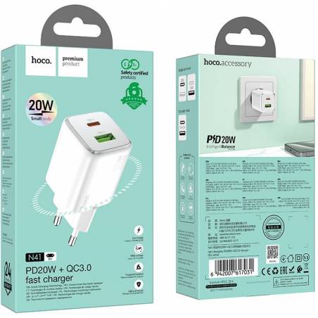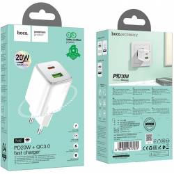 Сетевое зар./устр. Hoco N41 Almighty White 20W 3A (PD+QC+AFC) USB-A/Type-C универсальное белый