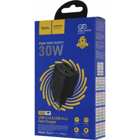 Сетевое зар./устр. Hoco N56 Fundador 30W 3A (PD) 2xUSB/USB type-C универсальное черный (32492)