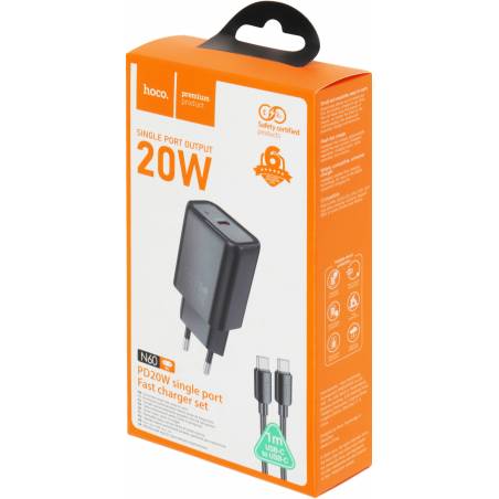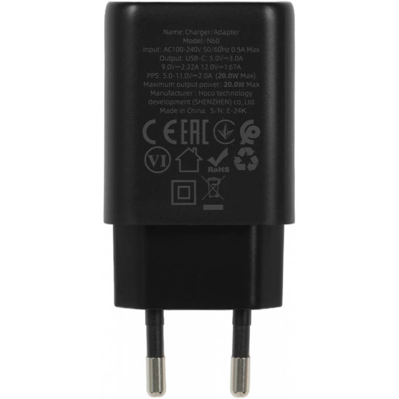 Сетевое зар./устр. Hoco N60 Gentle 20W 3A (PD+QC+AFC) USB Type-C универсальное черный