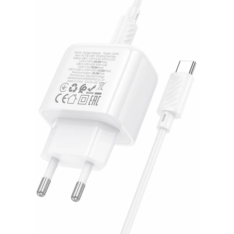 Сетевое зар./устр. Hoco CS54A Surplu 20W 3A (PD+QC) USB-A/Type-C универсальное белый (31532)
