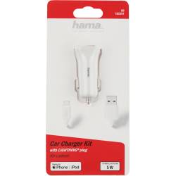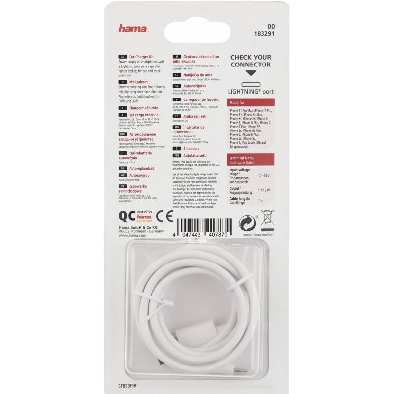- Комплект для зарядки прикуривателя Hama , Lightning, 1 А, белый.