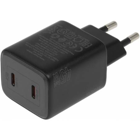 - Зарядное устройство с двумя Type-C портами.Поддержка протоколов быстрой зарядки для PD45W / PPS / QC3.0 / FCP / AFC.