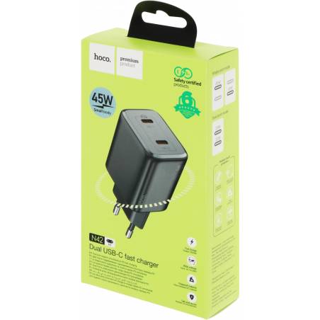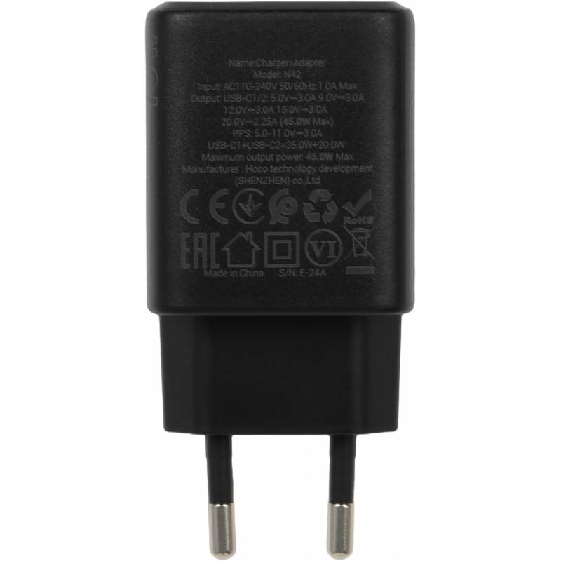 Сетевое зар./устр. Hoco N42 Elogiado 45W 3A+2.25A (PD+QC+AFC) 2xUSB type-C универсальное черный