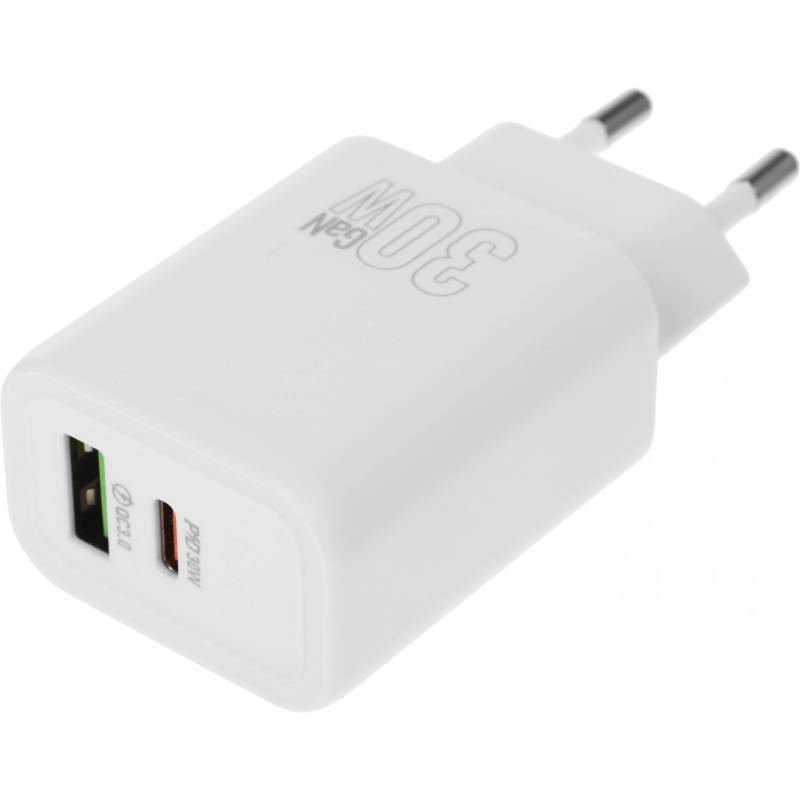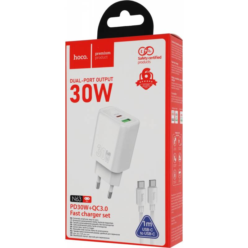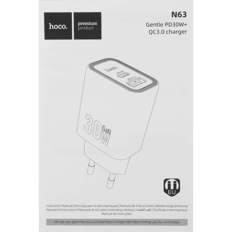 Сетевое зар./устр. Hoco N63 Gentle 30W 3A (PD) USB-A/Type-C универсальное белый (44402)