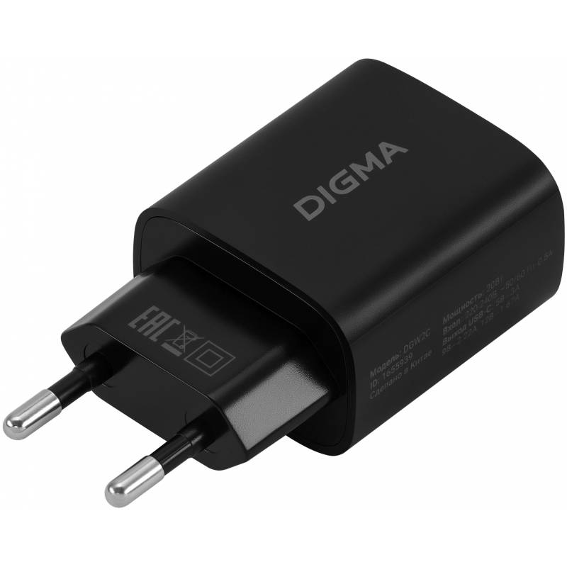 Сетевое зар./устр. Digma DGW2C 20W 3A (PD) USB-C универсальное черный (DGW2C0F010BK)