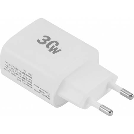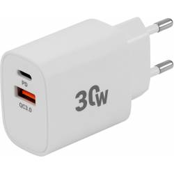 - Сетевое зарядное устройство с 2 разъемами - USB-C с поддержкой быстрой зарядки Power Delivery (PD 30W) и USB-A QC3.0