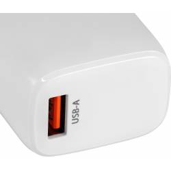 - Универсальное сетевое зарядное устройство с выходом USB-A с поддержкой быстрой зарядкиQC3.0 мощностью 18 Вт с максимальной силой тока 3 А