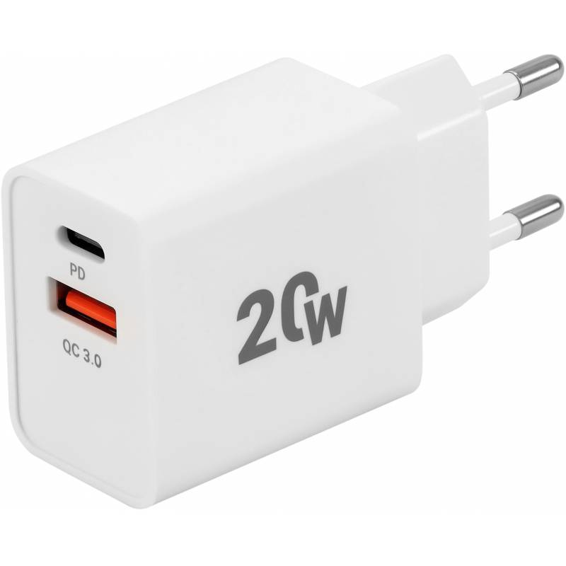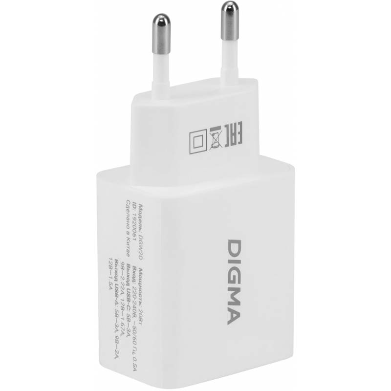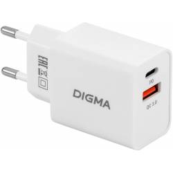 Сетевое зар./устр. Digma DGW2D 20W 3A+1A (PD+QC) USB-C/USB-A универсальное белый (DGW2D0F110WH)