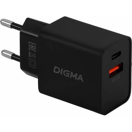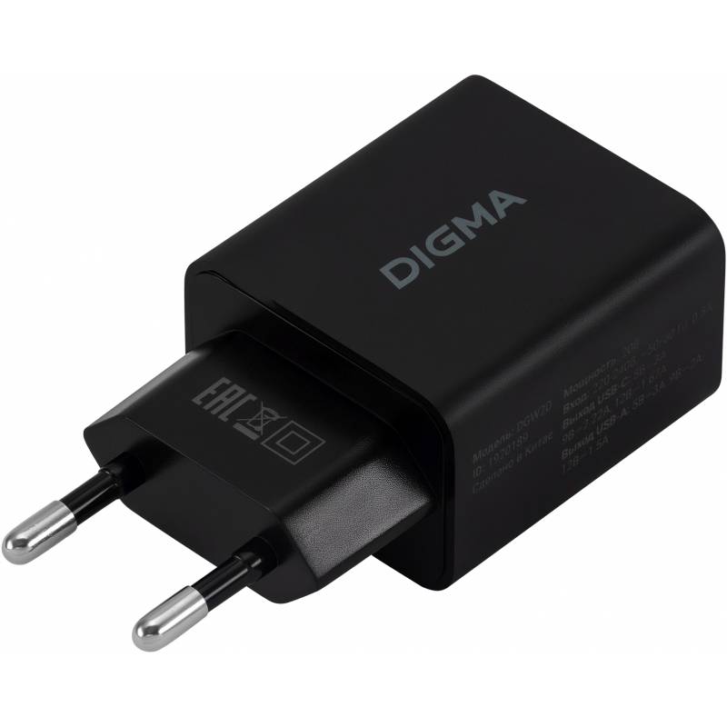 Сетевое зар./устр. Digma DGW2D 20W 3A+1A (PD+QC) USB-C/USB-A универсальное черный (DGW2D0F110BK)
