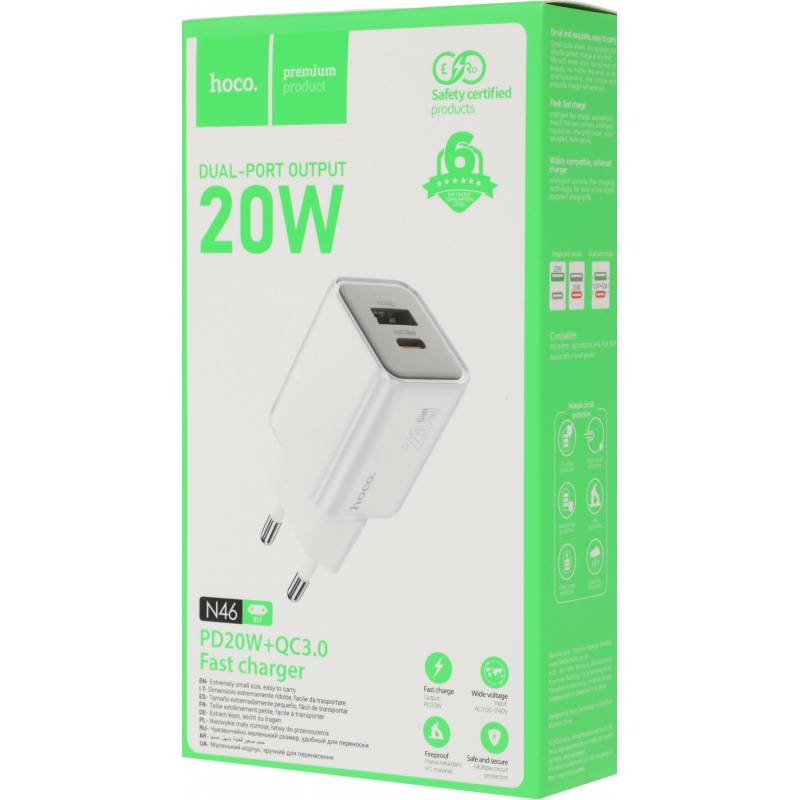 Сетевое зар./устр. Hoco N46 Glorious 20W 3A (PD+QC+AFC) USB-A/Type-C универсальное белый (35301)