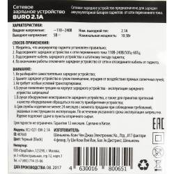 - Сетевое зарядное устройство Buro, идеально подходит для питания и зарядки аккумуляторной батареи вашего мобильного устройства от сети переменного тока.