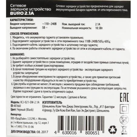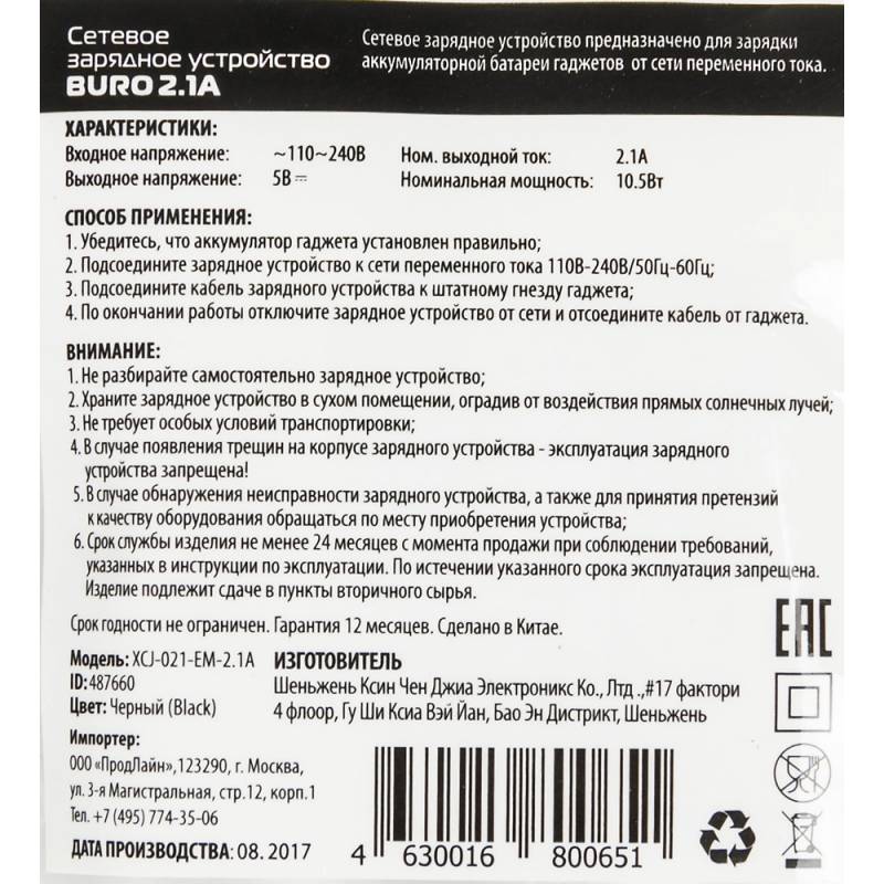 Сетевое зар./устр. Buro XCJ-021-EM-2.1A 10.5W 2.1A универсальное черный