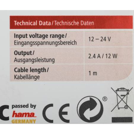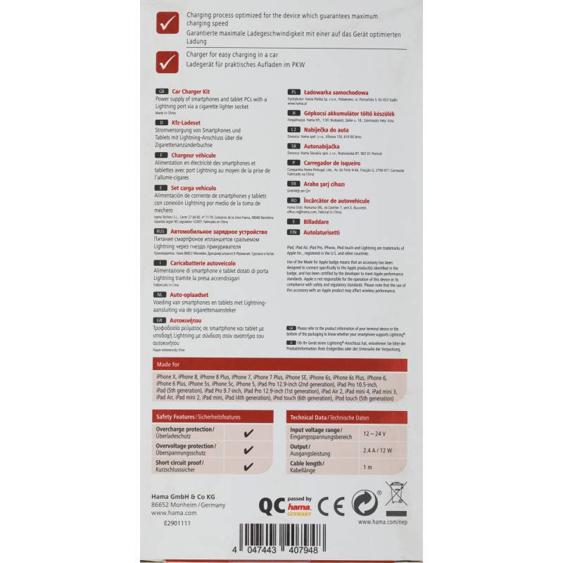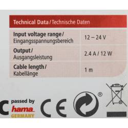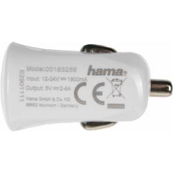 Автомобильное зар./устр. Hama H-183266 2.4A USB для Apple белый (00183266)