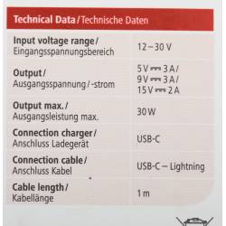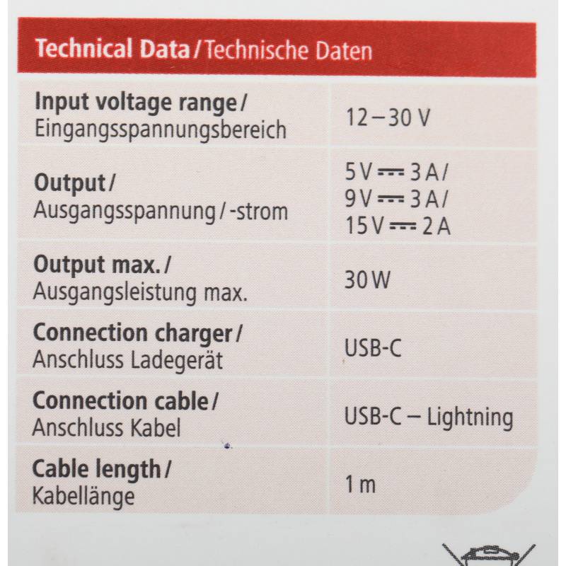 - Автомобильное зарядное устройство от прикуривателя. Максимальная выходная мощность 30 Вт