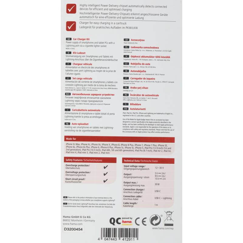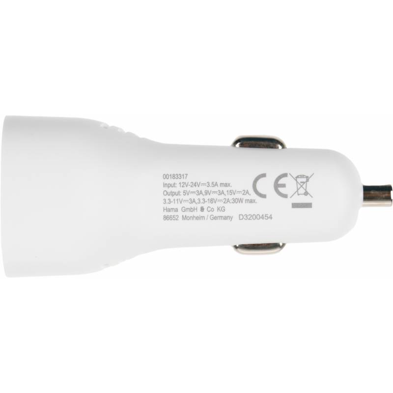 Автомобильное зар./устр. Hama H-183317 3A (PD) USB Type-C для Apple белый (00183317)