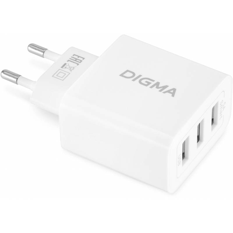 Сетевое зар./устр. Digma DGWC-3U-5A-WG 30W 3A (PD+QC) 3xUSB универсальное белый