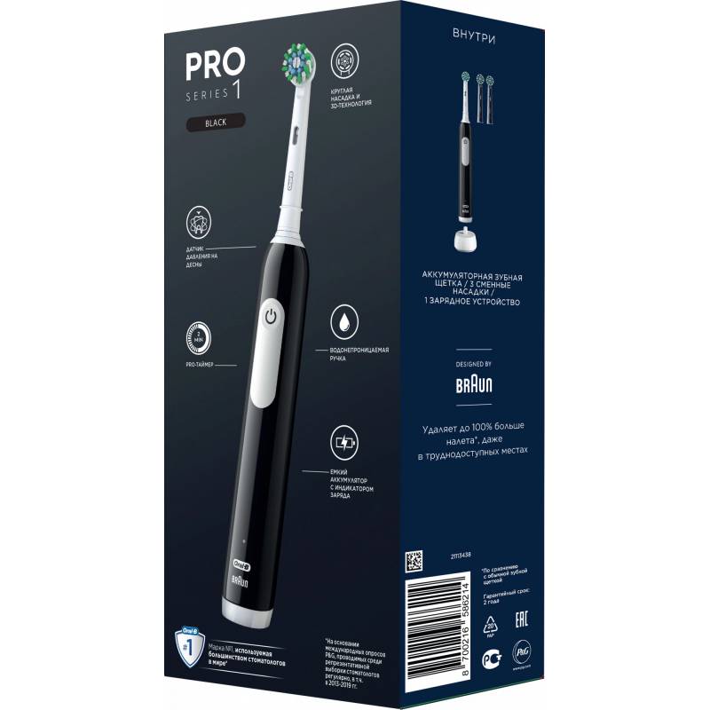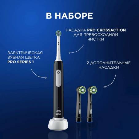 - Электрическая зубная щетка нового поколения Oral-B Pro Series 1 обеспечит ощущение профессиональной чистки каждый день. Круглая насадка Oral-B охватывает каждый зуб, удаляя до 100% больше зубного налета** даже в труднодоступных местах. Встроенный датчик д