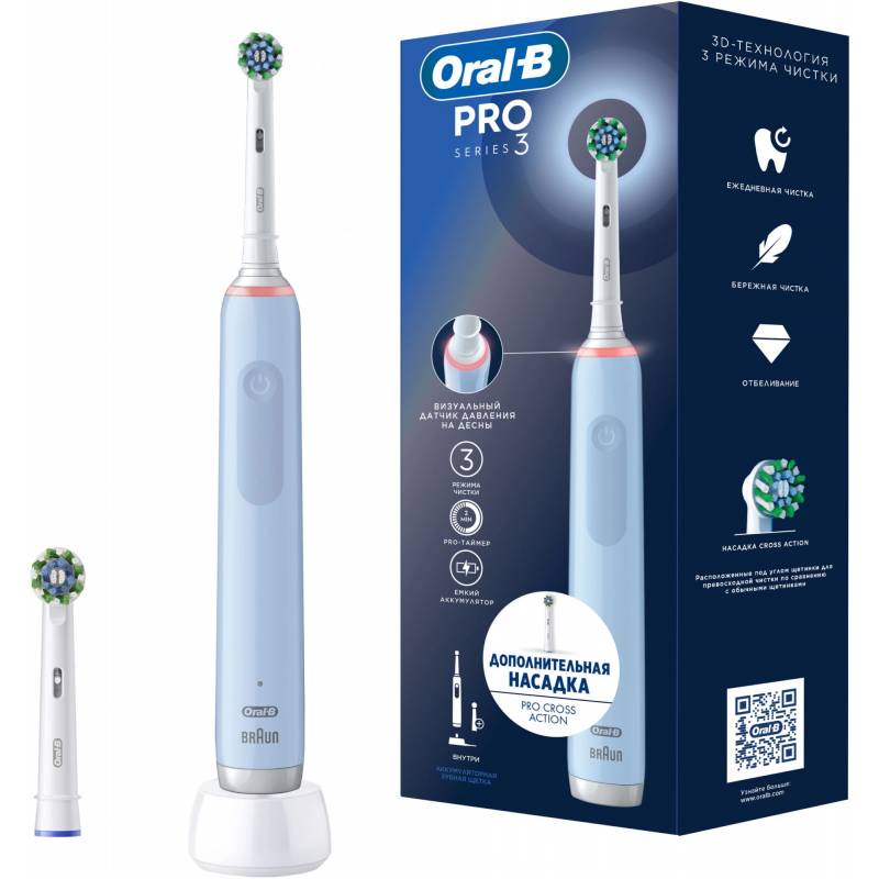- Электрическая зубная щетка нового поколения Oral-B Pro Series 3 обеспечит ощущение профессиональной чистки каждый день. Круглая насадка с технологией щетинок PRO Cross Action, удаляет до 100% больше зубного налета* даже в труднодоступных местах и защищает